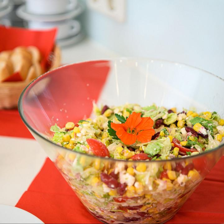 Alle Speisen werden in unserer hauseigenen Küche frisch für Sie zubereitet. Dabei bevorzugen wir saisonale und regionale Produkte. Uns ist es ein besonderes Anliegen, auf Ihre Wünsche individuell einzugehen. Auf Anfrage können wir Ihnen auch vegetarische, vegane und glutenfreie Gerichte anbieten. Zudem ist es möglich, die Reihenfolge der einzelnen Angebote bzw. Mahlzeiten zu variieren und an Ihren Zeitplan anzupassen.