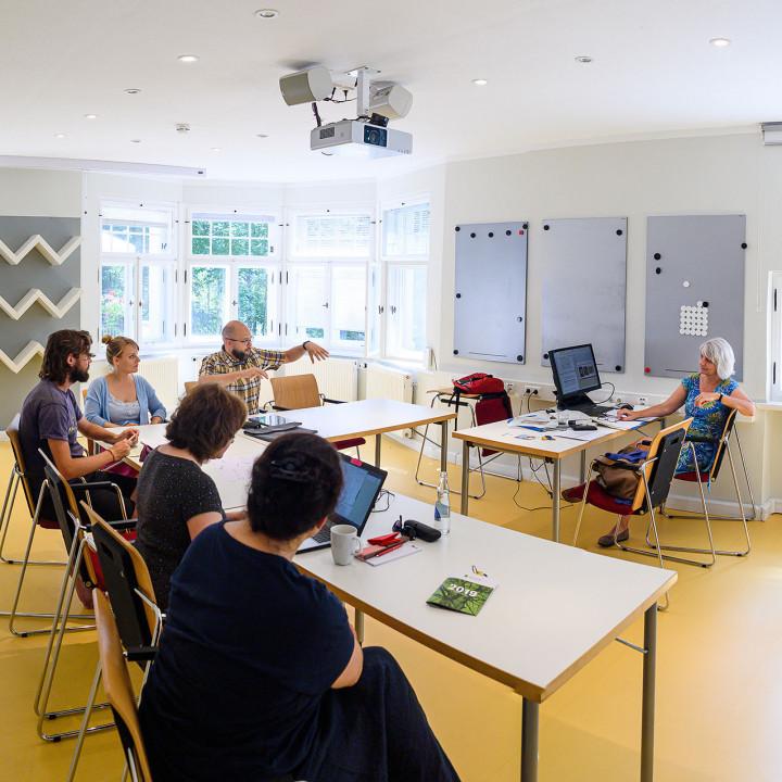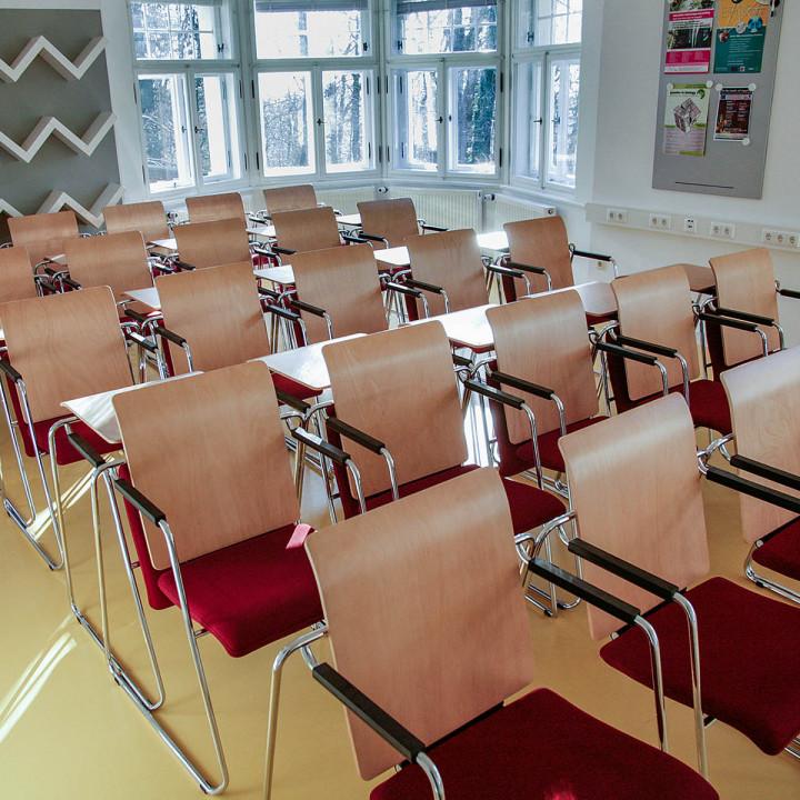 Im Haus Glückauf – das ehemalige Wohnhaus von Wilhelm Ostwalds mittlerem Sohn Walter und dessen Familie – befindet sich ein Tagungsraum für Gruppen mit bis zu 20 Personen. Im angrenzenden Salon haben Sie die Möglichkeit, Ihre Pausen zu verbringen. In den Frühlings- und Sommermonaten steht Ihnen für gemeinsame Mahlzeiten und ein entspanntes Zusammensein auch die zum Haus gehörende Terrasse zur Verfügung. Nach getaner Arbeit sind Sie herzlich eingeladen, den Tag in unserer Sachsenstube gemeinsam ausklingen zu lassen.