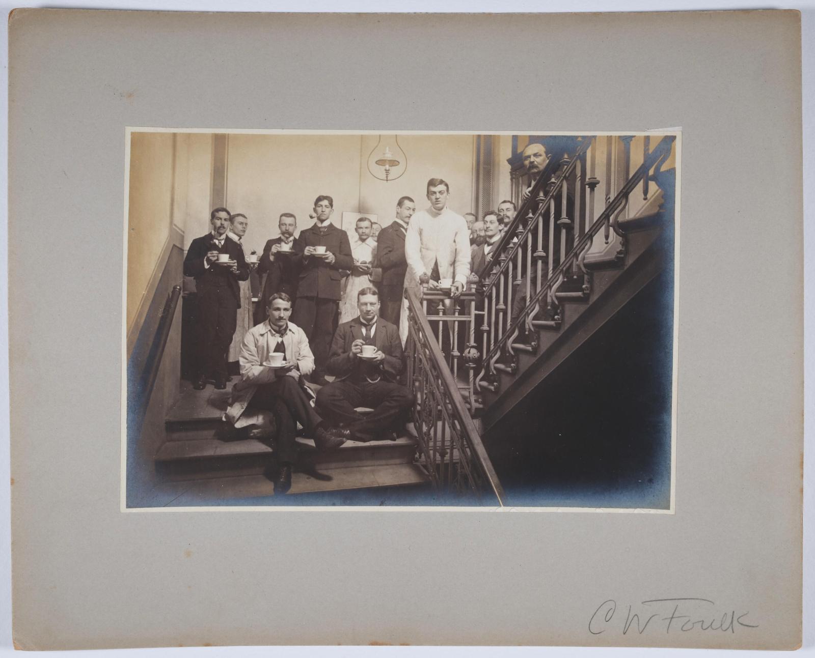 Ein weiteres Foto zeigt die sogenannte wissenschaftliche Familie, in die alle Studenten von Wilhelm Ostwald und seiner Frau Helene aufgenommen wurden. Helene Ostwald hatte es sich zur Aufgabe gemacht, jeden Mittag die Studenten mit Kaffee und Brot zu versorgen. Auf dem Foto sieht man die Studenten im Treppenhaus des „Instituts“ stehend, die Kaffeetassen haltend in die Kamera schauend. In der Autobiografie Lebenslinien von Wilhelm Ostwald heißt es dazu: „Es bereitete meiner Frau das größte Vergnügen, in dem Treppenraum, wo die Kannen aufgestellt wurden und den sie von unserer Wohnung aus übersehen konnte, die Studenten mit ihren Kaffeetassen auf den Stufen hocken zu sehen, wie die Spatzen auf der Dachrinne.