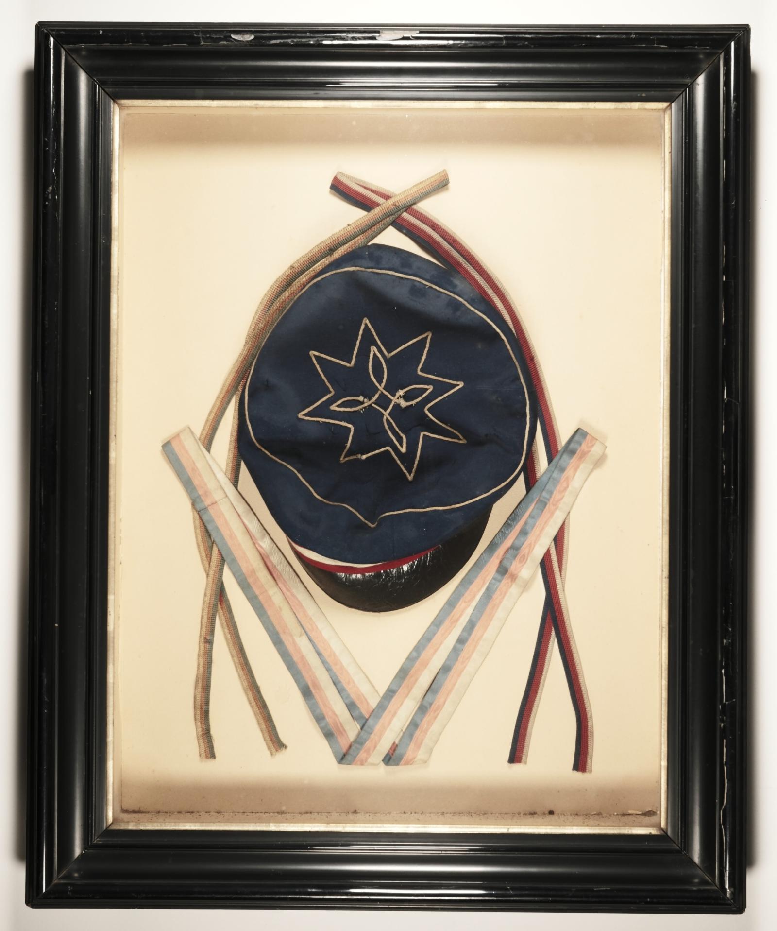 Maße: Rahmen 57,5 × 46,5 × 7,5 cm / Studentenmütze Ø ca. 19 cm